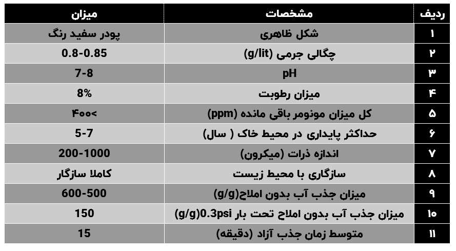 از جمله مهمترین عوامل در تعیین ویژگیهای مطلوب یک سوپرجاذب کشاورزی میتوان به موارد زیر اشاره کرد: